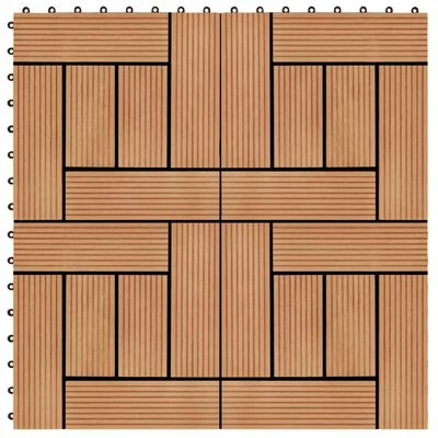Cet ensemble de carreaux de terrasse WPC, d’une taille individuelle de 30 x 30 cm, se compose de 11 pièces et couvre une surface totale d’un mètre carré. Il sera parfait pour les patios, les balcons, les salles de bains, ou votre piscine ou spa.
