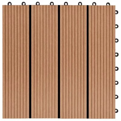 Cet ensemble de carreaux de terrasse WPC, d’une taille individuelle de 30 x 30 cm, se compose de 11 pièces et couvre une surface totale d’un mètre carré. Il sera parfait pour les patios, les balcons, les salles de bains, ou votre piscine ou spa.