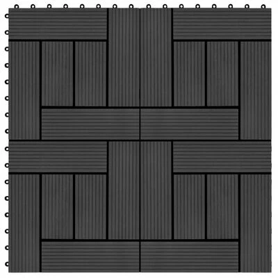 Cet ensemble de carreaux de terrasse WPC, d’une taille individuelle de 30 x 30 cm, se compose de 11 pièces et couvre une surface totale d’un mètre carré. Il sera parfait pour les patios, les balcons, les salles de bains, ou votre piscine ou spa.