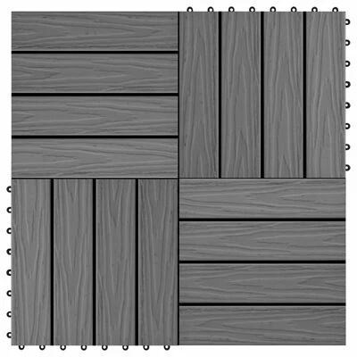 Notre jeu de carreaux de terrasse en WPC embossés, d’un format individuel de 30 x 30 cm, se compose de 11 pièces et couvre une surface totale d’un mètre carré. Il donnera un aspect propre à votre patio, balcon, salle de bain, piscine ou spa.