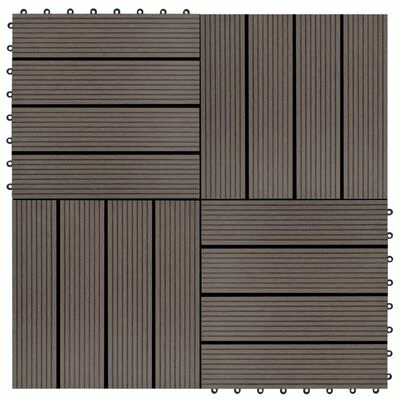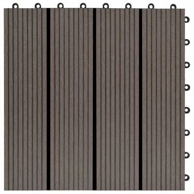 Cet ensemble de carreaux de terrasse en WPC, d’une taille individuelle de 30 x 30 cm, se compose de 22 pièces et couvre une surface totale de 2 mètres carrés. Il sera parfait pour les patios, les balcons, les salles de bains, ou votre piscine ou spa.