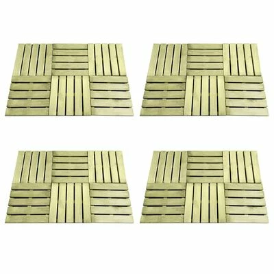 Les dalles de terrasse sont en pin imprégné, qui est résistant à l’usure, aux intempéries et à la pourriture, et respectueux de l’environnement. Les beaux grains de bois ajoutent un charme rustique et rendent chaque pièce unique. La livraison inclut 24 dalles de terrasse.
