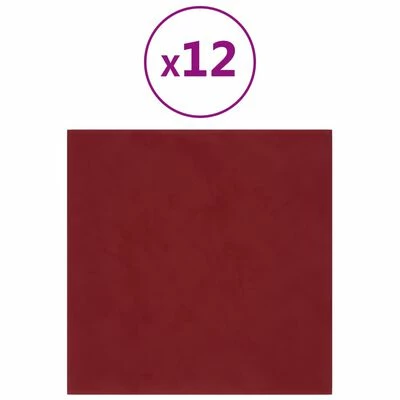 VidaXL Panneaux muraux 12 pcs Rouge bordeaux 30×30 cm Velours 1,08 m²