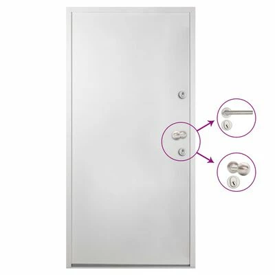 Cette porte est équipée d’un cadre en bois avec revêtement en aluminium, seuil en aluminium, charnières réglables 2D (3 charnières par porte), tôle d’acier avec laminage PVC. La porte d’entrée est également impressionnante par sa qualité robuste et sa grande commodité de verrouillage. Elle est livrée avec 1 jeu de poignées de porte, 1 jeu de boutons, 2 serrures, 3 pênes, 3 clés et des goupilles anti-effraction.
